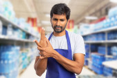 Zdjęcie "Pracownik hipermarketu rozciąganie palców" może być wykorzystywane do celów osobistych i komercyjnych zgodnie z warunkami zakupionej licencji Royalty-free. Obraz jest dostępny do pobrania w jakości wysokiej rozdzielczości do 5760x3840.