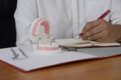 Zdjęcie "Dentysta, siedzi przy stole z modelu zębów i narzędzia w profesjonalny gabinet stomatologiczny, koncepcja medycznych i stomatologicznych" może być wykorzystywane do celów osobistych i komercyjnych zgodnie z warunkami zakupionej licencji Royalty-free. Obraz jest dostępny do pobrania w jakości wysokiej rozdzielczości do 5760x3840.