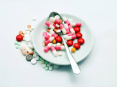 Zdjęcie "różne tabletki w biały talerz na tle drewna," może być wykorzystywane do celów osobistych i komercyjnych zgodnie z warunkami zakupionej licencji Royalty-free. Obraz jest dostępny do pobrania w jakości wysokiej rozdzielczości do 5760x3840.