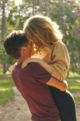 Śliczne czerwone włosy para mężczyzny i kobiety w stroju casual na da