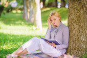 Zdjęcie "Relaks rozrywka pojęciem hobby. Najlepsze samopomocy książek dla kobiet. Dziewczyna zmęczony, ziewanie sit park chudego pnia czytać książki. Czytanie, inspirujące książki. Top listy bestsellerów. Książek, każda dziewczyna powinna przeczytać" może być wykorzystywane do celów osobistych i komercyjnych zgodnie z warunkami zakupionej licencji Royalty-free. Obraz jest dostępny do pobrania w jakości wysokiej rozdzielczości do 5760x3840.