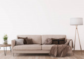 Zdjęcie "Drewniany stół na różowym dywanie z przodu szary settee z poduszkami w białym płaskim wnętrzu. Prawdziwe zdjęcie" może być wykorzystywane do celów osobistych i komercyjnych zgodnie z warunkami zakupionej licencji Royalty-free. Obraz jest dostępny do pobrania w jakości wysokiej rozdzielczości do 5760x3840.