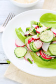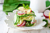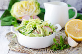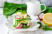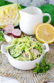 świeże sałatki z ogórków, rzodkiewka i kapusta z cytryny