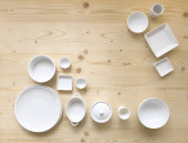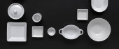 Kolekcja białe nowoczesne naczynia na czarnym tle
