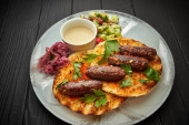 Zdjęcie "Lula kebab z sosem i zioła" może być wykorzystywane do celów osobistych i komercyjnych zgodnie z warunkami zakupionej licencji Royalty-free. Obraz jest dostępny do pobrania w jakości wysokiej rozdzielczości do 5760x3840.