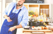 Zdjęcie "Człowiek przygotowuje pyszne i zdrowe jedzenie w kuchni domowej" może być wykorzystywane do celów osobistych i komercyjnych zgodnie z warunkami zakupionej licencji Royalty-free. Obraz jest dostępny do pobrania w jakości wysokiej rozdzielczości do 5760x3840.