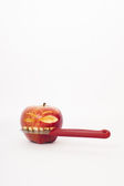 zbliżenie na kawałek banana z owsa kolczane na małym drewnianym widelcu