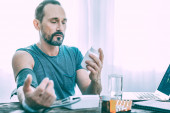 Zdjęcie "Szorstkowłose staruszek w pasiastą koszulę, obserwując nazwę pigułki" może być wykorzystywane do celów osobistych i komercyjnych zgodnie z warunkami zakupionej licencji Royalty-free. Obraz jest dostępny do pobrania w jakości wysokiej rozdzielczości do 5760x3840.