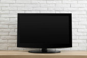 Duży telewizor, na białej ścianie
