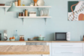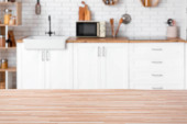 Zdjęcie "Drewniany stół w nowoczesnej kuchni" może być wykorzystywane do celów osobistych i komercyjnych zgodnie z warunkami zakupionej licencji Royalty-free. Obraz jest dostępny do pobrania w jakości wysokiej rozdzielczości do 5760x3840.