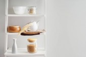Zdjęcie "Półki z naczyniami w pobliżu biała ściana" może być wykorzystywane do celów osobistych i komercyjnych zgodnie z warunkami zakupionej licencji Royalty-free. Obraz jest dostępny do pobrania w jakości wysokiej rozdzielczości do 5760x3840.