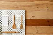 Zestaw przyborów kuchennych na stole na białym tle