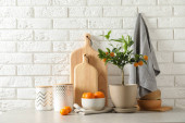 Zdjęcie "Przybory kuchenne na stole w pobliżu biała ściana" może być wykorzystywane do celów osobistych i komercyjnych zgodnie z warunkami zakupionej licencji Royalty-free. Obraz jest dostępny do pobrania w jakości wysokiej rozdzielczości do 5760x3840.