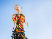 Zdjęcie "Święto Maślenica. Jodły ozdobione symbolami słońca i kolorowymi wstążkami. Moscow, Federacja Rosyjska." może być wykorzystywane do celów osobistych i komercyjnych zgodnie z warunkami zakupionej licencji Royalty-free. Obraz jest dostępny do pobrania w jakości wysokiej rozdzielczości do 5760x3840.
