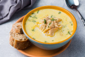 Zdjęcie "Zupa rybna w drewniane miski ze świeżych ziół." może być wykorzystywane do celów osobistych i komercyjnych zgodnie z warunkami zakupionej licencji Royalty-free. Obraz jest dostępny do pobrania w jakości wysokiej rozdzielczości do 5760x3840.