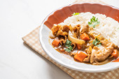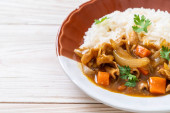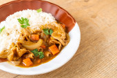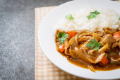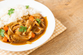 Japoński curry ryż z plasterki wieprzowiny, marchwi i cebuli