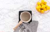 puste otwarta książka kucharska na stole z naczyniami i Dodatki piekarnicze