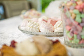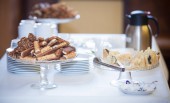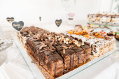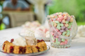 Ciasteczka w kształcie serca na tacy. Słodki stolika w restauracji, F