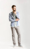 Zdjęcie "Modny młody człowiek na tle koloru" może być wykorzystywane do celów osobistych i komercyjnych zgodnie z warunkami zakupionej licencji Royalty-free. Obraz jest dostępny do pobrania w jakości wysokiej rozdzielczości do 5760x3840.