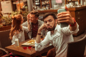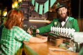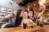 Rudowłosa Ładna dziewczyna w zielonej koszuli kratkę, Dokonywanie selfie na smartfonie