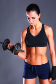 Piękne kobiety na siłowni, ćwiczenia z jej trenerem. Piękna kobieta.