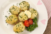 Zdjęcie "przetargu młodych ziemniaków z kwaśną śmietaną i zioła w patelni na drewniany stół szczegół" może być wykorzystywane do celów osobistych i komercyjnych zgodnie z warunkami zakupionej licencji Royalty-free. Obraz jest dostępny do pobrania w jakości wysokiej rozdzielczości do 5760x3840.
