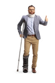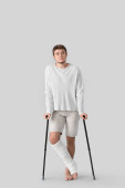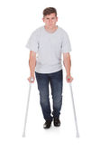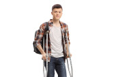Zdjęcie "Pełnoekranowy Portret studenta chodzięcia z kul wyizolowanych na białym tle" może być wykorzystywane do celów osobistych i komercyjnych zgodnie z warunkami zakupionej licencji Royalty-free. Obraz jest dostępny do pobrania w jakości wysokiej rozdzielczości do 5760x3840.