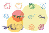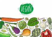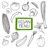 Styl szkicu. Ręcznie rysowane zestaw zdrowych Doodles składnik żywności w wektorze. Zdrowa dieta Wegańska, Veggie źródła białka.