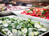 Sałatka ze szpinakiem, pomidorkami koktajlowymi, sałatką kukurydzianą, szpinakiem, świeżą miętą.