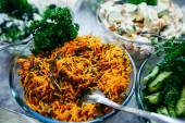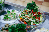 Sałatka ze szpinakiem, pomidorkami koktajlowymi, sałatką kukurydzianą, szpinakiem, świeżą miętą.