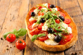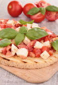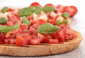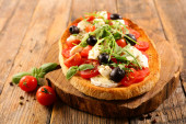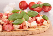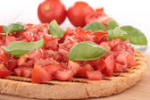 bruschetta z pomidorów, mozzarelli i bazylii na białym tle