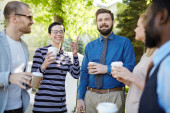 Zdjęcie "Grupa młodych biznesmeni filiżankę kawy stojący w biurze." może być wykorzystywane do celów osobistych i komercyjnych zgodnie z warunkami zakupionej licencji Royalty-free. Obraz jest dostępny do pobrania w jakości wysokiej rozdzielczości do 5760x3840.