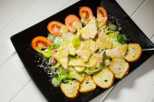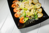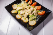 Cielęcina stek Sałatka z serem rukola, sałata, pomidor, oliwki i parmezanem