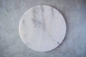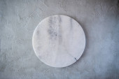 Widok z góry z okrągła taca z marmuru na teksturowanej powierzchni
