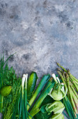 Widok z góry świeżych warzyw na szary teksturowanej powierzchni