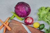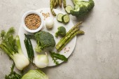 Widok z góry z warzywami i fasolą na drewniana Taca