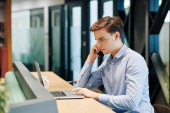 Zdjęcie "przystojny biznesmen trzyma tkanki patrząc na laptopie w biurze " może być wykorzystywane do celów osobistych i komercyjnych zgodnie z warunkami zakupionej licencji Royalty-free. Obraz jest dostępny do pobrania w jakości wysokiej rozdzielczości do 5760x3840.