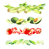 Akwarela allsorts od świeżych warzyw; celeri łodygi, cucumb