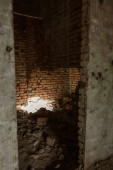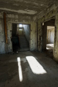 Mistyczne wnętrza, ruiny opuszczonych zniszczony budynek domu kultury, teatr z ZSRR. Stare zniszczone ściany, korytarz z śmieci i brud. Zniszczone, formowania, gipsu ozdoby, płaskorzeźba