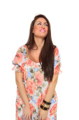 Portret oszałamiającej młodej kobiety niosącej torby na zakupy