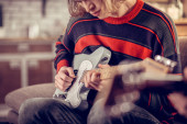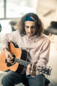 Zdjęcie "Ciekaw, przystojny młody muzyk, nauki, techniki i nowymi przyznaje" może być wykorzystywane do celów osobistych i komercyjnych zgodnie z warunkami zakupionej licencji Royalty-free. Obraz jest dostępny do pobrania w jakości wysokiej rozdzielczości do 5760x3840.