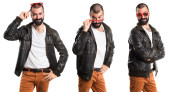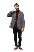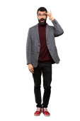 Przystojny mężczyzna z brodą, w okularach i zaskoczony na na białym tle