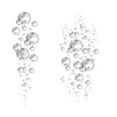 Underwater czarny musująca pęcherzyki powietrza na białym tle.