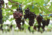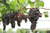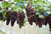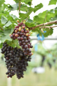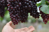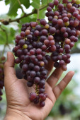 Świeże winogrona w rękach, które mają drzew i z winnicy w pobliżu mojego domu