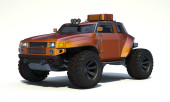 Renderowanie 3D bez marki generycznego samochodu koncepcyjnego w środowisku studyjnej. Mała koncepcja ATV