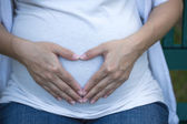 piękna w ciąży z mężem używane ręką dotknął tułowia