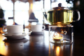 śniadanie w kawiarni/tło jedzenie rano świeże śniadanie w kawiarni