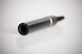 Czarny amortyzator dla samochodów ciężarowych na białym tle ze ścieżką przycinającą.