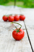 świeże pomidory wiśniowe na drewnianym stole