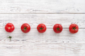 Świeże, czerwone pomidory na stary tło. Widok z góry. Bezpłatny egzemplarz przestrzeni.